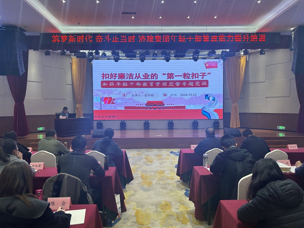 10月22日,濟糧集團紀委書記以《扣好廉潔從業的“第一粒扣子”》為題,為濟糧集團年輕干部培訓班全體學員講授了一堂內容深刻、發人深省的廉政黨課。