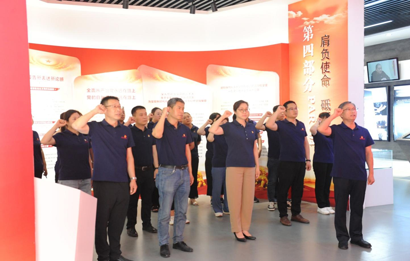 在宣誓廳,全體黨員干部面對鮮紅的黨旗,莊嚴宣誓,重溫入黨誓詞,深刻領會共產黨人的初心使命,進一步堅定了理想信念。
