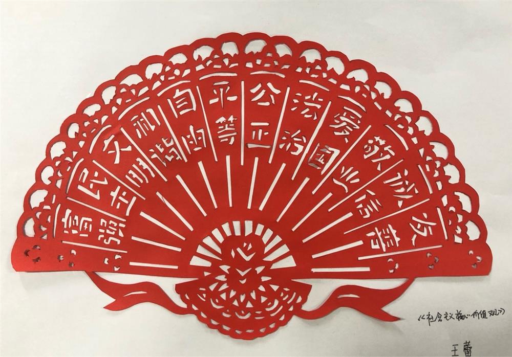 園區(qū)投資公司王蕾的作品《社會主義核心價(jià)值觀》獲得二等獎,作者以緊密有致的扇形設(shè)計(jì)將社會主義核心價(jià)值觀這個(gè)主題巧妙的呈現(xiàn),作品畫面均衡、線條流暢,美觀大方,有較高的藝術(shù)性和觀賞性。