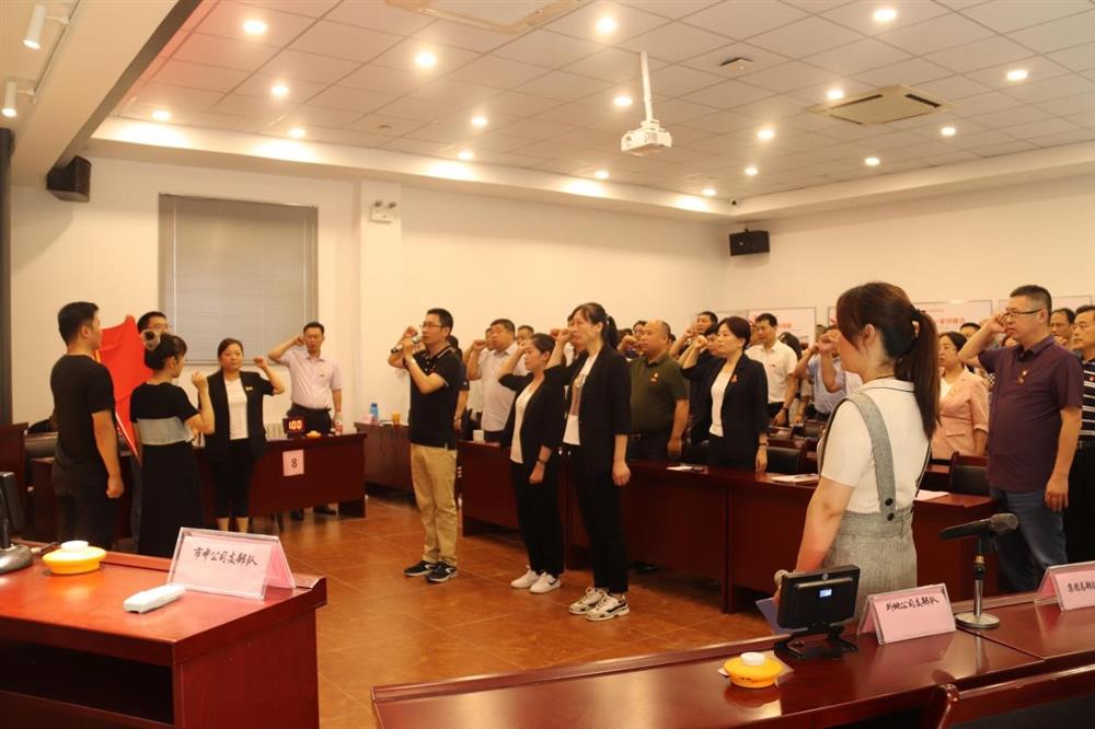 首先,在雄壯的國歌聲中,全體黨員齊聲高唱,氣氛非常熱烈。接下來,四名護旗手手持鮮紅的黨旗,在領誓員帶領下,新黨員進行入黨宣誓,老黨員重溫入黨誓詞,黨委副書記馮秀娟為兩名新黨員佩戴了黨徽。隨后,餐飲支部李瓦寧進行了精彩的黨課宣講。