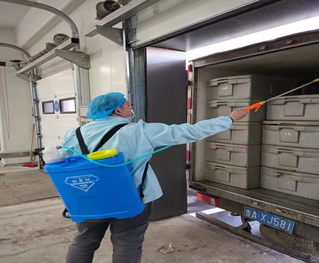 為保證食品安全和員工自身安全,金德利團(tuán)餐公司、供應(yīng)鏈公司每天都堅(jiān)持消毒環(huán)節(jié)的打卡監(jiān)督管理。進(jìn)入公司園區(qū)的車輛嚴(yán)格進(jìn)行消殺,大噴霧器對(duì)進(jìn)出車輛進(jìn)行消殺、登記;對(duì)接車間具體負(fù)責(zé)人安排專人對(duì)食品箱進(jìn)行消殺。