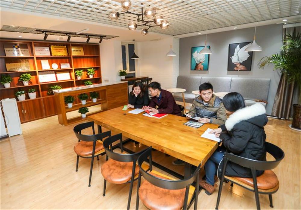 在4樓眾創空間,聚集著50多家在孵跨境電商企業,多數都是90后創業人員。25日臨近傍晚6點,不少創客仍埋頭忙碌。在眾創空間打造的咖啡吧,幾個年輕人正探討業務。