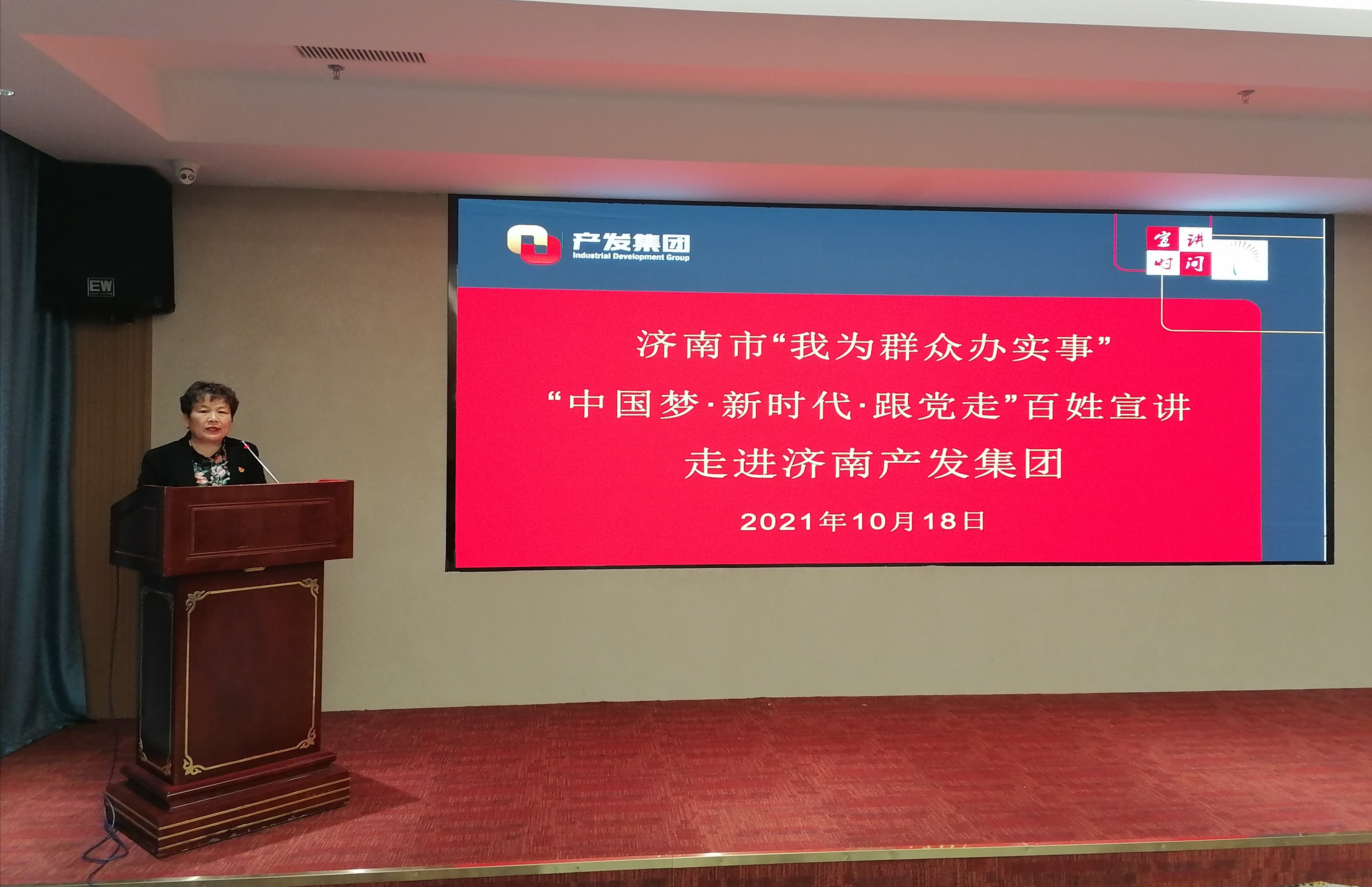 為深入貫徹落實習近平總書記“七一”重要講話精神,扎實推進黨史學習教育“我為群眾辦實事”活動,10月18日下午,濟南市“我為群眾辦實事”“中國夢·新時代·跟黨走”百姓宣講活動走進濟南產發集團。在市委講師團副處級干部呂桂紅的率領下,“我為群眾辦實事”百姓宣講團的6位宣講員用他們的親歷、親聞、親為,為產發集團50余名參會干部職工講述“聽黨話、跟黨走、率先垂范、主動擔當、無私奉獻”的動人故事。