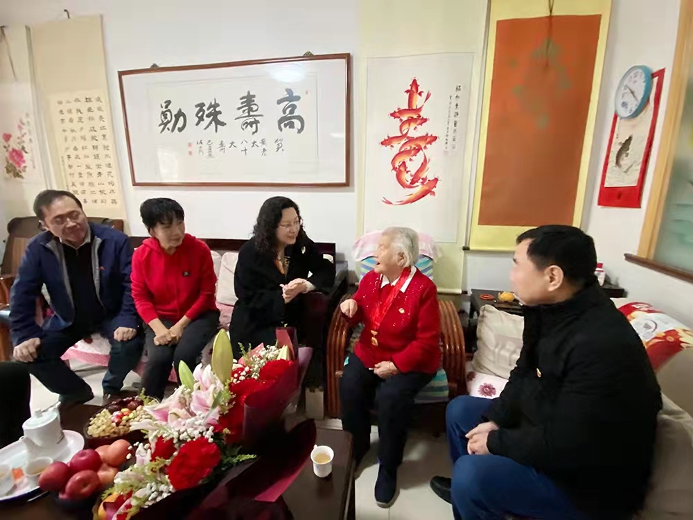 隨后黃蓓一行來到元首集團離休老干部、老黨員黃顯和家中,送上鮮花和慰問金,致以佳節(jié)祝福,與黃顯和老人座談交流。93歲的黃顯和老人年輕時在湖南讀書期間就接受革命洗禮,秘密加入學校進步社團,在“白色恐怖”下開展愛國運動,轉(zhuǎn)業(yè)后在濟南針織廠辛勤耕耘近十八載,1982年4月離休,是名副其實的巾幗模范代表。黃蓓代表集團黨委感謝她為黨和企業(yè)做出的突出貢獻,對其在革命年代的英勇事跡表示崇高敬意,表示產(chǎn)發(fā)集團要傳承好老一輩不懼艱辛、敢于奮斗、無私奉獻的精神,凝心聚力、接續(xù)奮斗。