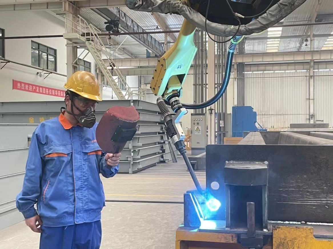 金鐘研發(fā)部門為提升汽車衡秤臺(tái)的承重強(qiáng)度,新設(shè)計(jì)了U型梁結(jié)構(gòu),經(jīng)過試制和不斷推廣,訂單逐步增加,汽車衡班的工作壓力也不斷加大,而汽車衡的稱臺(tái)焊接成為了制約工作效率的瓶頸。為了能夠按時(shí)保質(zhì)完成生產(chǎn)任務(wù),黨支部組織成立“黨員編程突擊隊(duì)”,由黨員張慶力任隊(duì)長,突擊隊(duì)成員發(fā)揮模范帶頭作用,發(fā)揚(yáng)匠心精神,成功解決了“汽車衡自動(dòng)化焊接編程”和自動(dòng)焊機(jī)在平臺(tái)底部尋位不準(zhǔn)難題,最大限度地提高焊接機(jī)器人的效率。